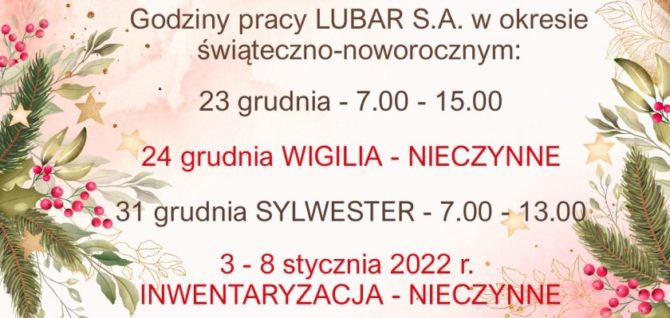 GODZINY PRACY W OKRESIE ŚWIĄTECZNO-NOWOROCZNYM