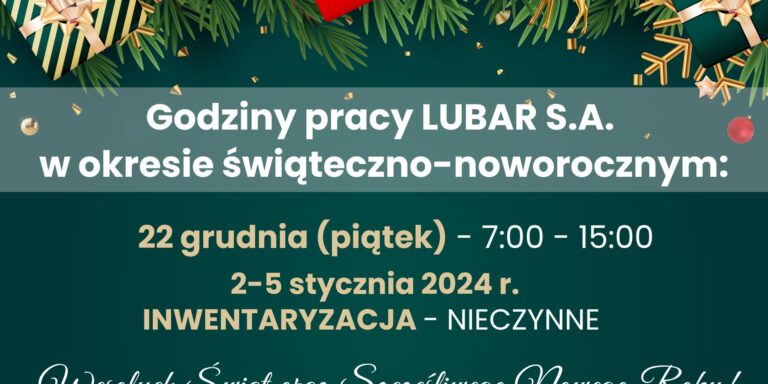 UWAGA Informujemy, iż w dniu 2 i 3 listopada 2023 firma LUBAR S.A.…